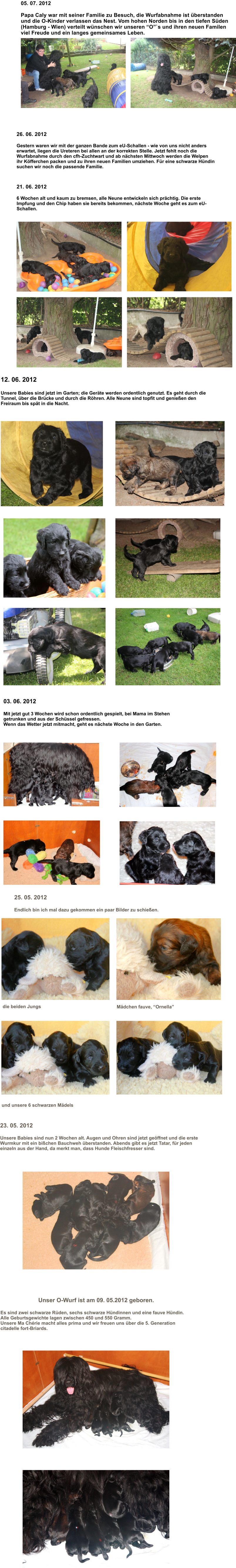 O-WurfWT: 09. 05. 2012Vater: CH Caly des cendres de luneHD: A, CSNB frei, eU frei sel F 2011Mutter: Ma Chérie noire de la citadelle fortHD: A, CSNB fei, eU frei2 Rüden, noir6 Hündinnen, noire1 Hündin, fauve alle frei von ektopischen UreterenOdin, HD AOlivier, HD AOdette, HD AOnida Tyra, HD A ZZL im cfhOnyx noireOpaleOphelia, HD AOrnella, HD AOxana, HD A (Österreich) ZZL in Österreich